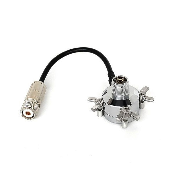 Solid og praktisk antennefeste med SO239 kontakt, designet for montering på tripod-stativ. Perfekt for portabel bruk, enten du bruker HF antenne -, CB antenne -, VHF- eller UHF antenner. Antenne du skal bruke må ha PL-feste som skrus rett ned i festet.
